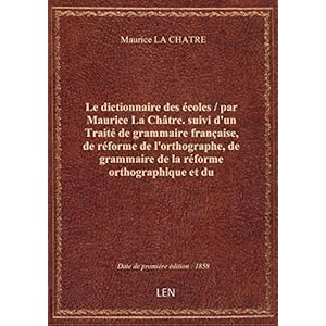Le dictionnaire des écoles / par Maurice La Châtre. suivi d'un Traité de grammaire française, de réf 4 mai 2017. de Maurice LA CHATRE. ... Le dictionnaire des écoles 1 décembre 2016. de Maurice La Châtre.