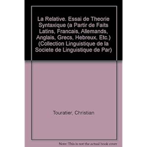 Incoming search For La relative: Essai de théorie syntaxique : à partir de faits latins, français, allemands, anglais, grecs, hébreux, etc